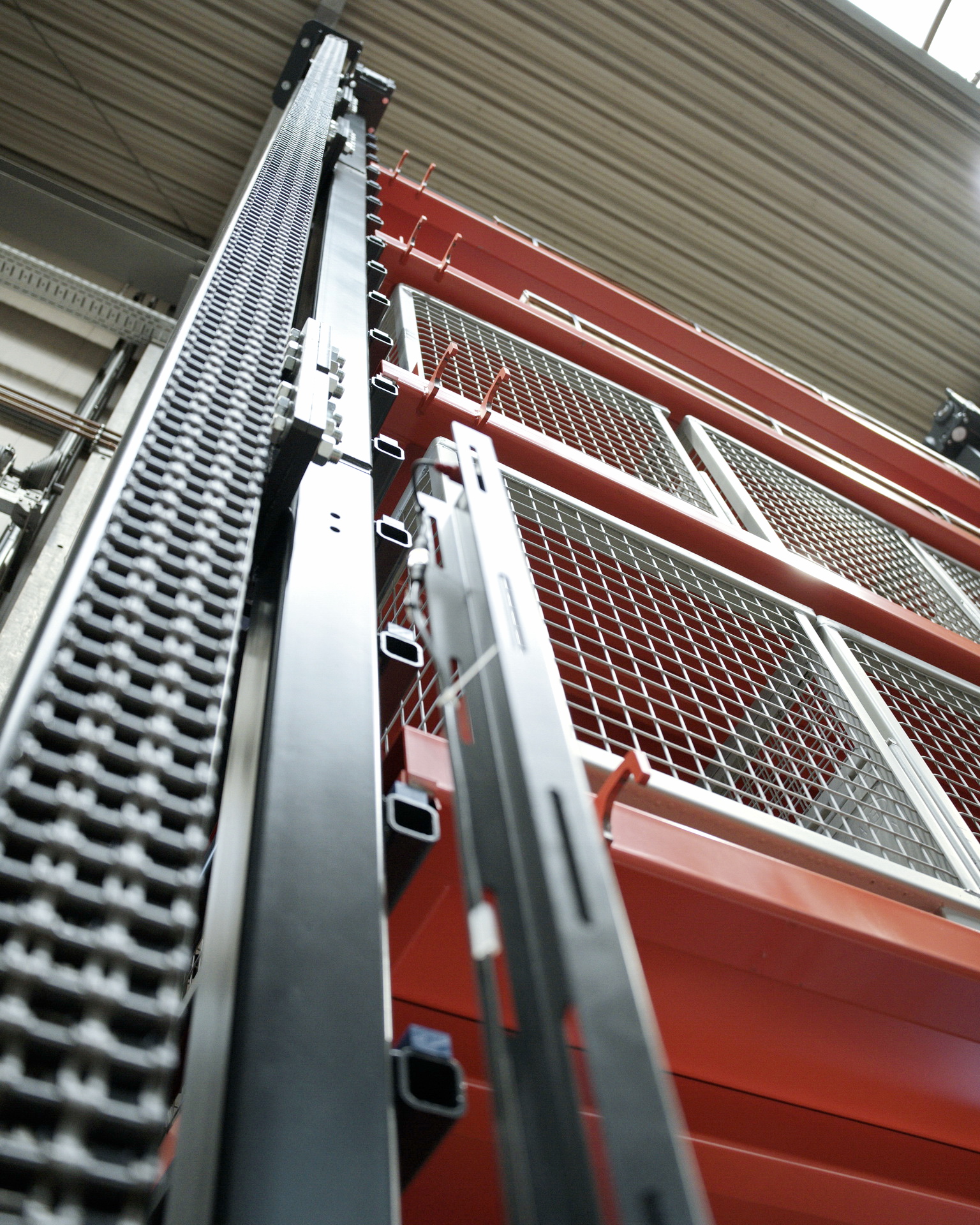 Die Lifteinheit des Automatic-Tower fährt auf Knopfdruck das gewünschte Fach aus dem Regal heraus und senkt dieses auf eine ergonomische Höhe ab. Nach der erfolgten Be- oder Entladung wird das Fach automatisch wieder eingelagert.